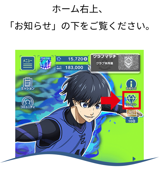 ゲーム内プレゼントBOXにて